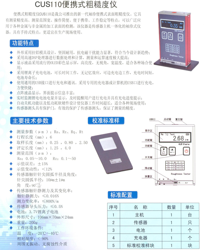 CUS110便攜式粗糙度儀