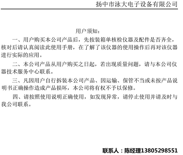 揚中市泳大電子設(shè)備有限公司 地址:揚中市綠揚路88號 聯(lián)系人:陳道洪 手機:13805298551 電話:0511-88360209 88363385 傳真:0511-88360209 郵箱:chendaohong8551@126.com 郵編:212200 網(wǎng)址:www.yorkwilson.com
